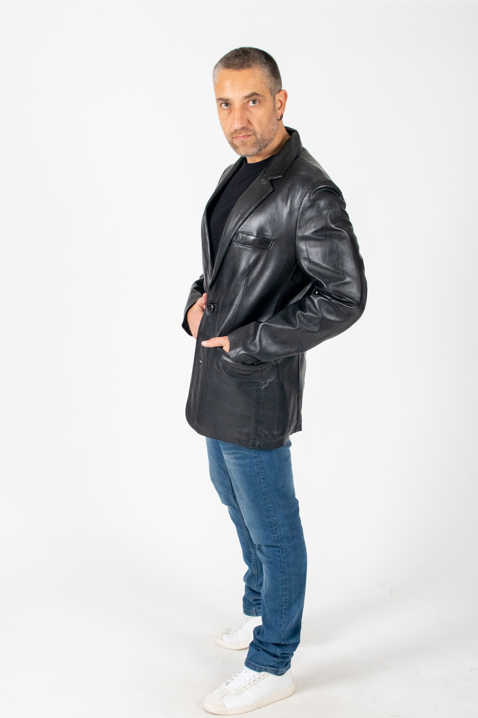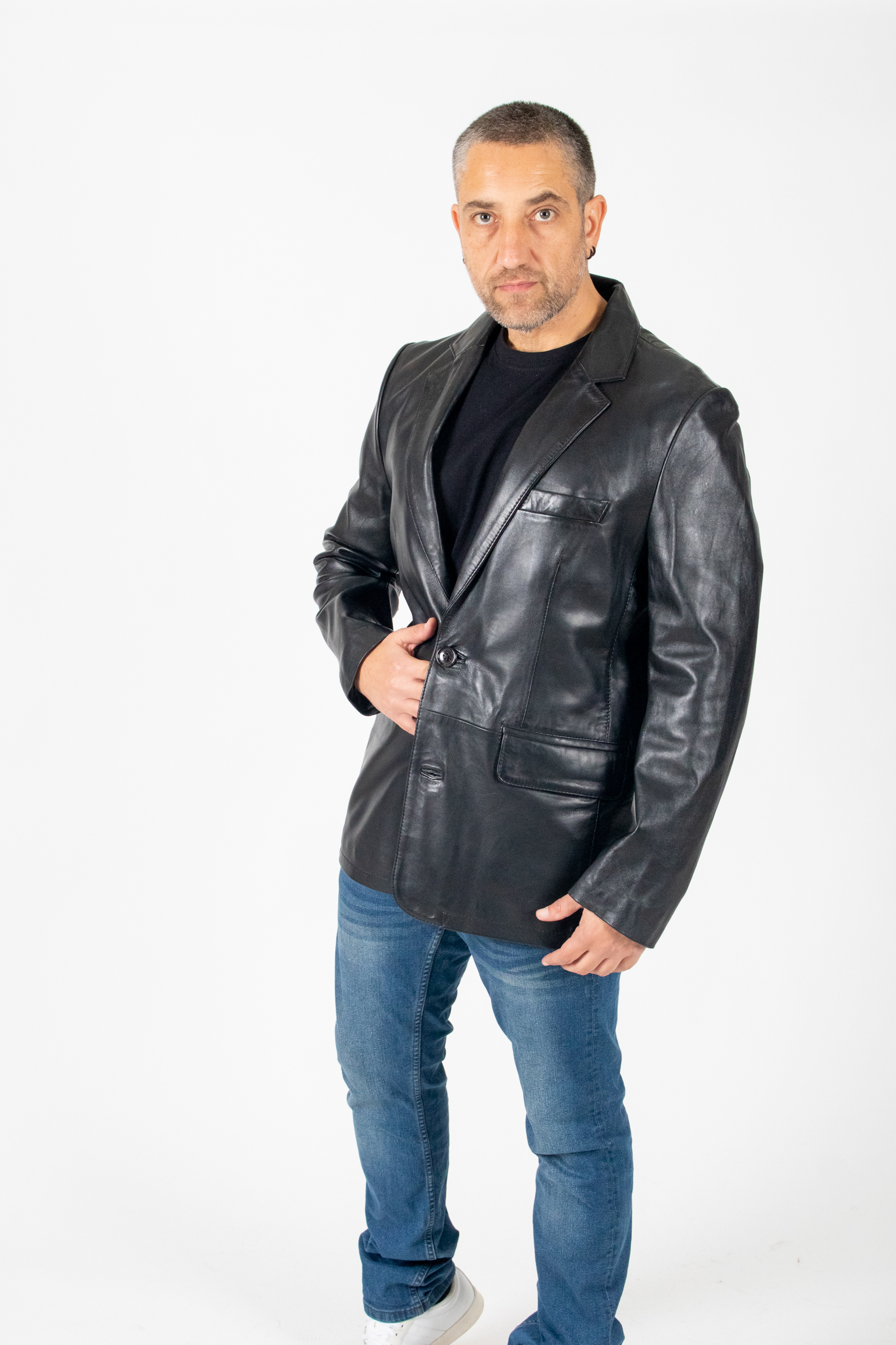 Ανδρικό δερμάτινο σακάκι blazer σε μαλακό δέρμα αρνί με πέτο γιακά 2 κουμπιά κούμπωμα, εξωτερική τσέπη και εσωτερική τσέπη.