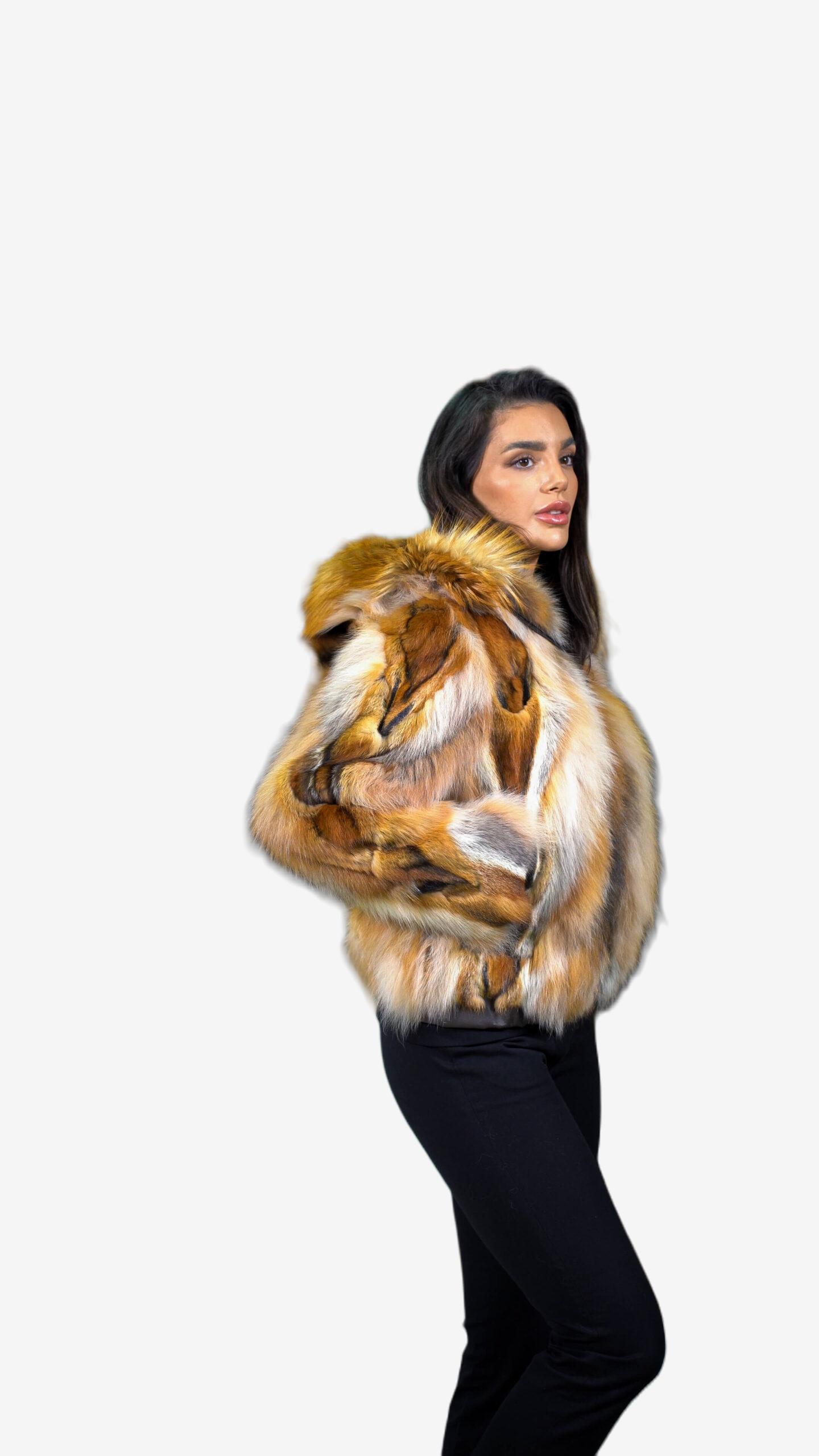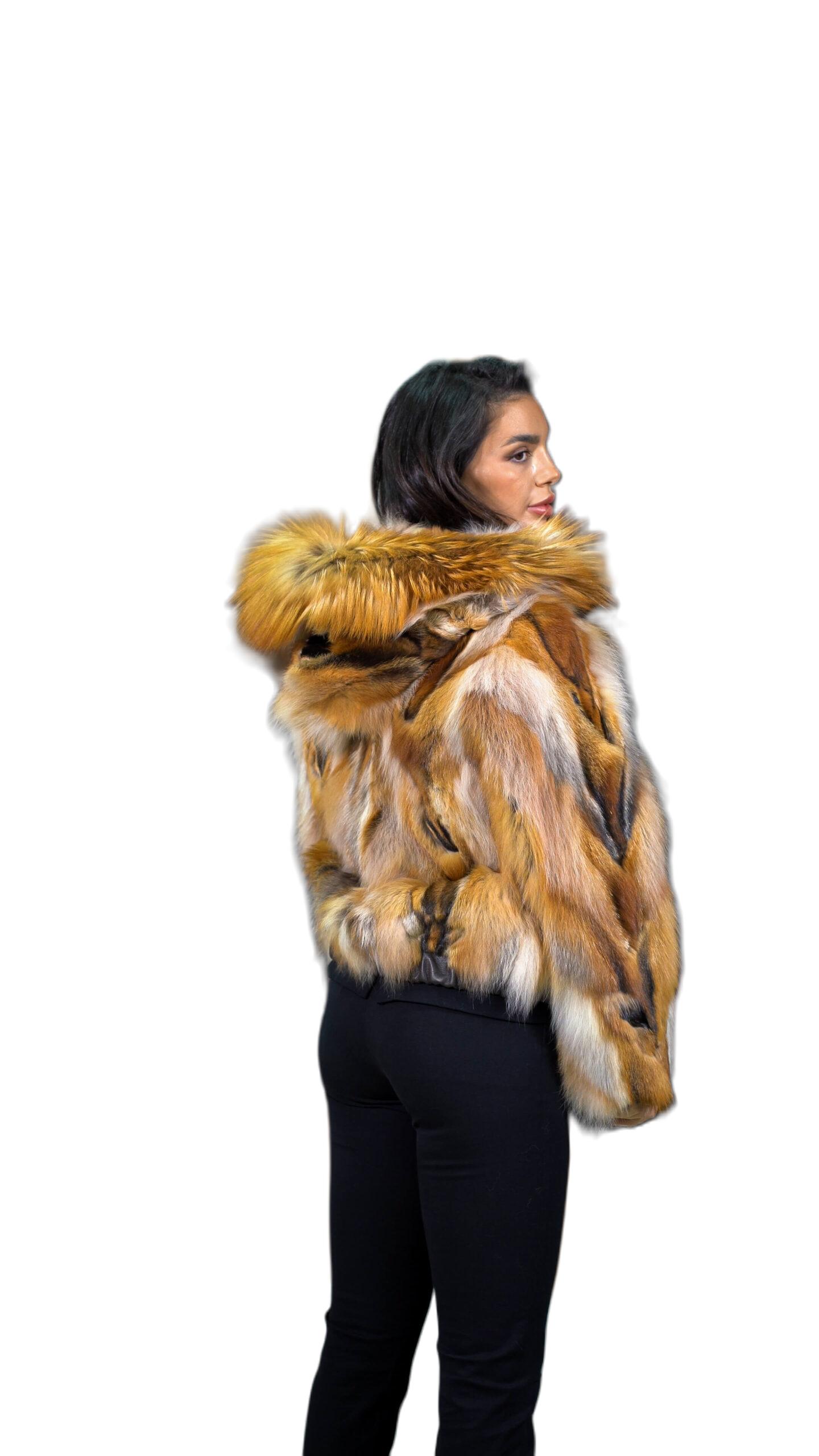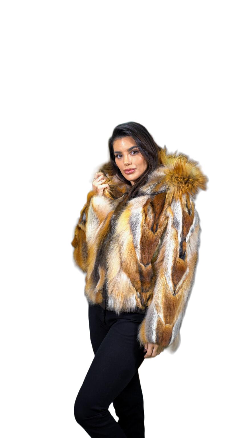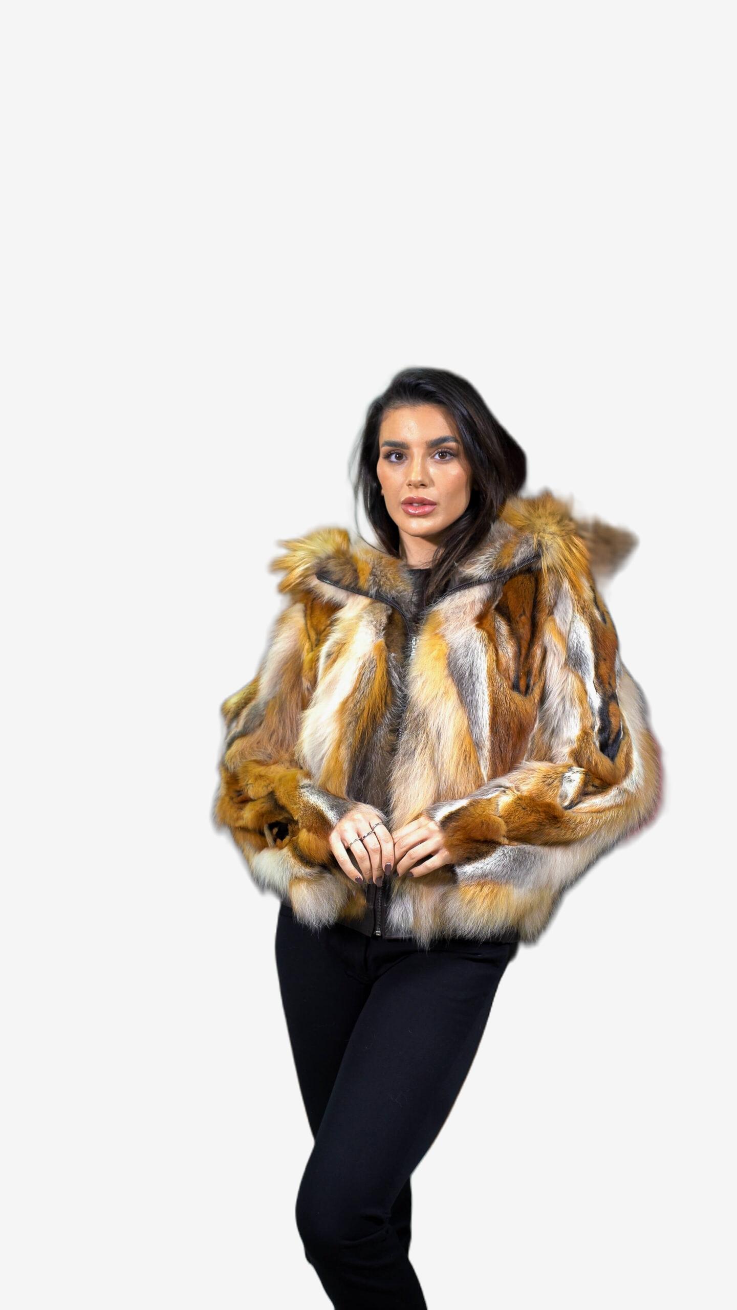 Γυναικείο μπουφάν από γούνα αλεπού σε πολύχρωμη απόχρωση.
