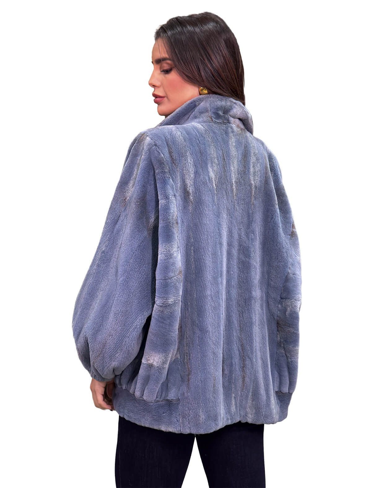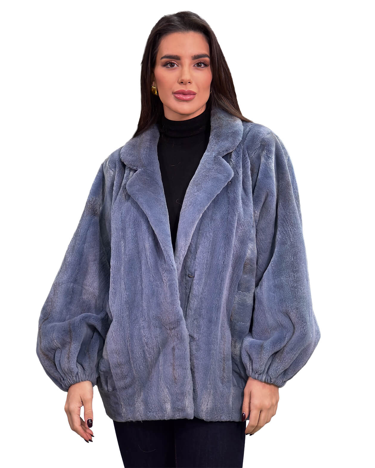 Γυναικεία ζακέτα βιζόν-κουρεμένο σε απόχρωση γαλάζιο.